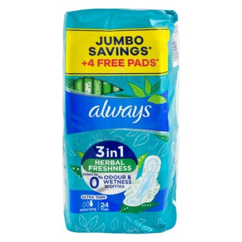 Always Ultra Thin Extra Long, Herbal Fresh, 24 Pads